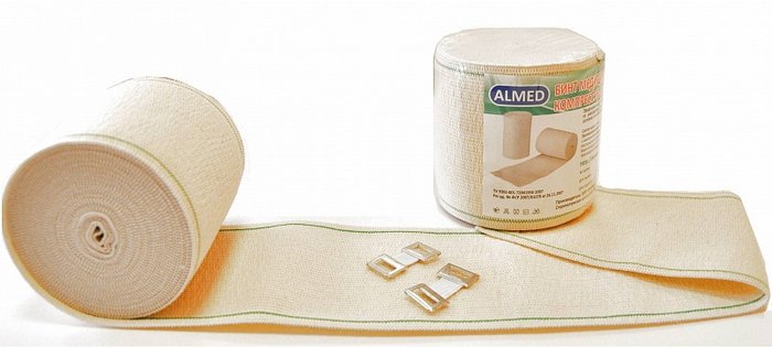 Бинт эластичный медицинский с застежками, средней растяжимости, ленточный, предназначен для профилактики и лечение варикозного расширения вен, а также отеков и травматических осложнений,