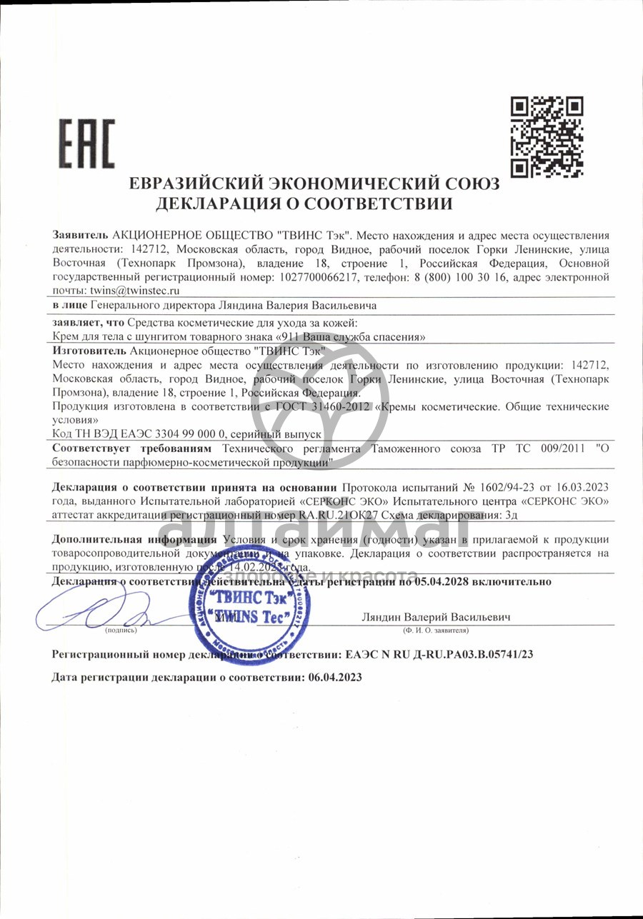Есть вопросы по товару "Крем для тела 911 с шунгитом 100мл"?