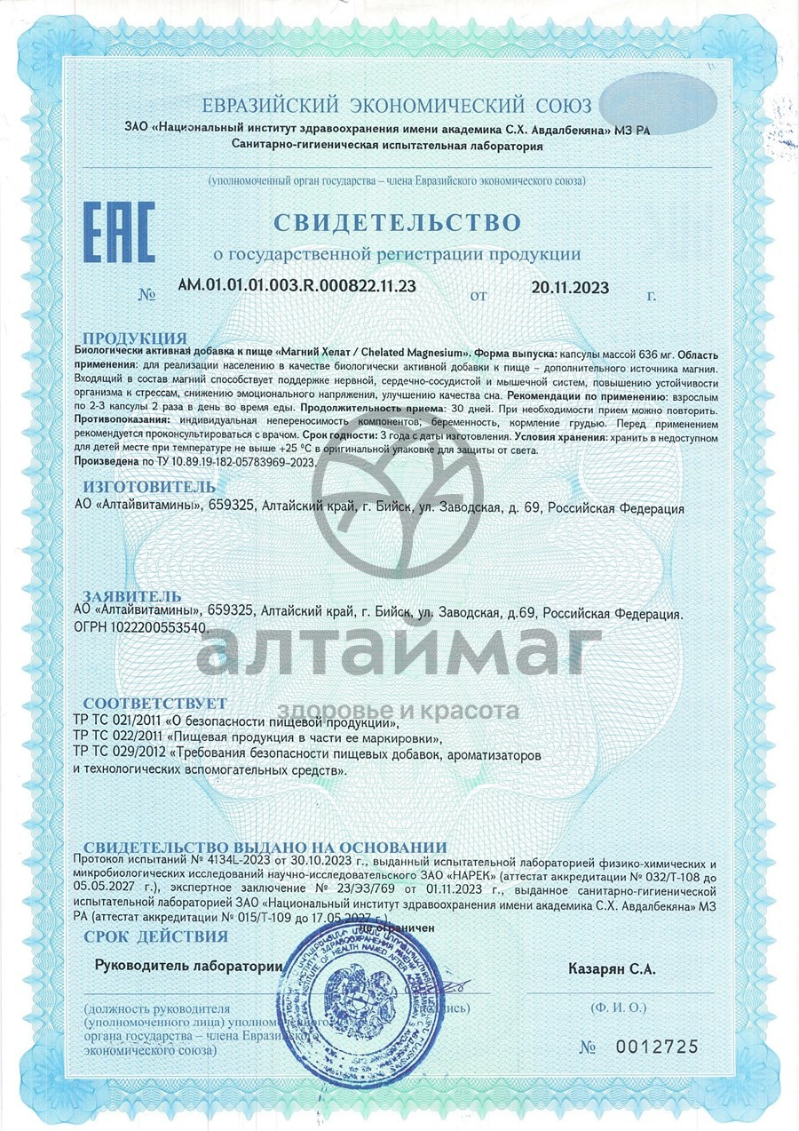 Есть вопросы по товару "Магний Хелат Алтайвитамины 60 капсул"?