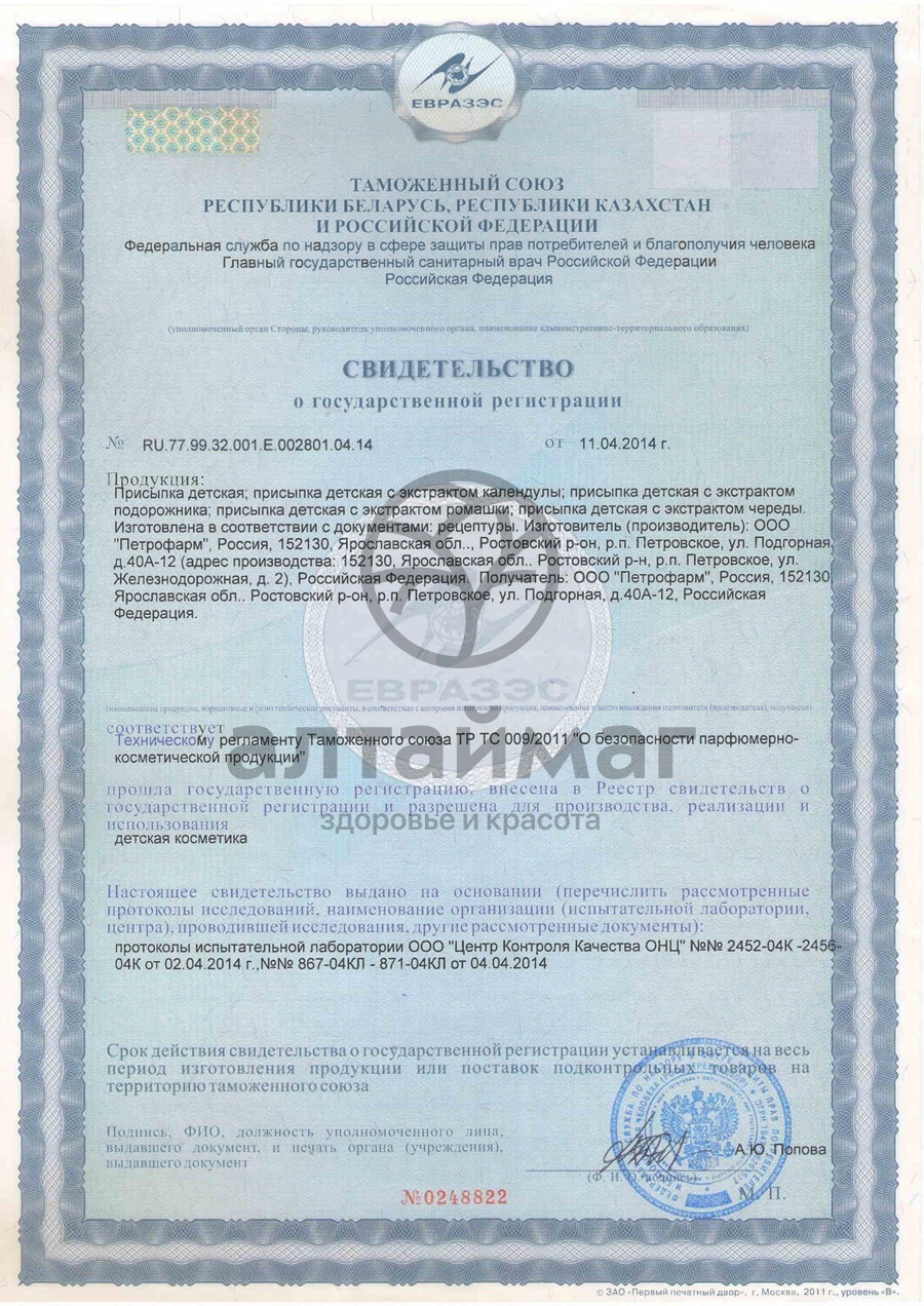 Гипоаллергенный продукт в сухом формате пудры не слипается, не образует комочков, не создает дискомфорта для новорожденного, идеально подходит для обработки дермы в процессе смены подгузника или после купания. Косметическое средство не содержит ароматизаторов, консервантов и красителей, составе натуральные растительные экстракты ромашки и хлопок, которые успокаивают нежную кожу детки - девочки или мальчика, восстанавливают ее оптимальный баланс и защитные свойства.